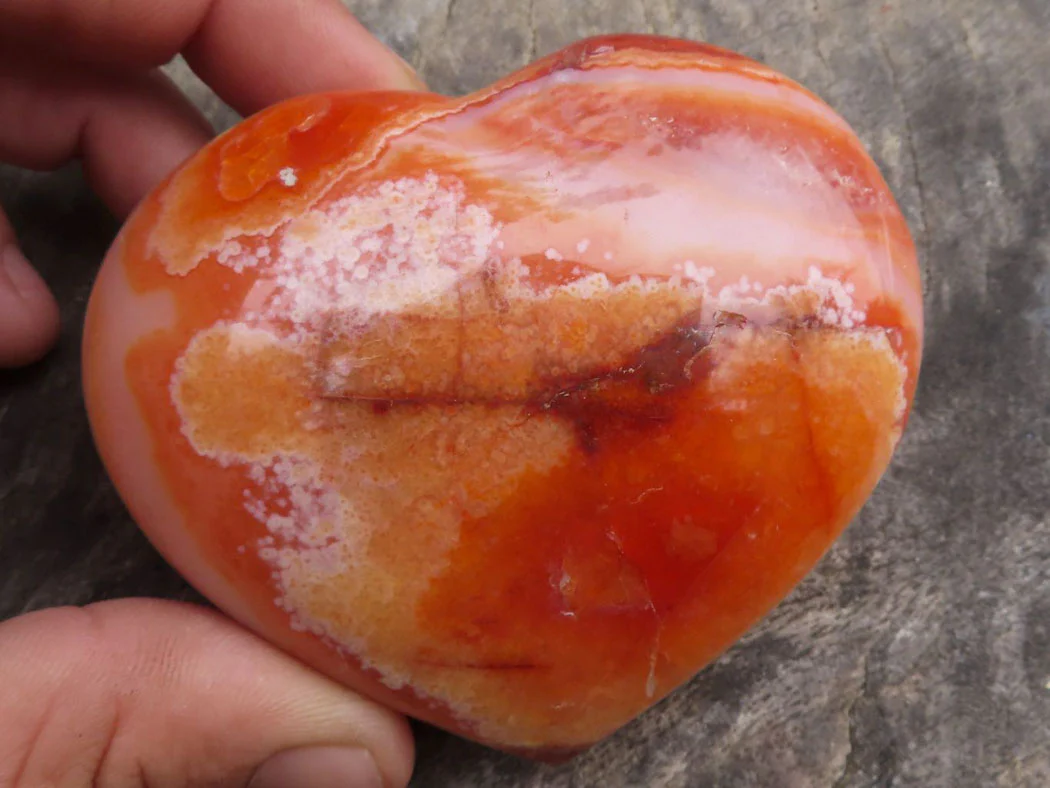 You will receive one of 6 carnelian hearts that have just been received directly from the mines in Madagascar. It will be released after it’s charged up on the Vortex.