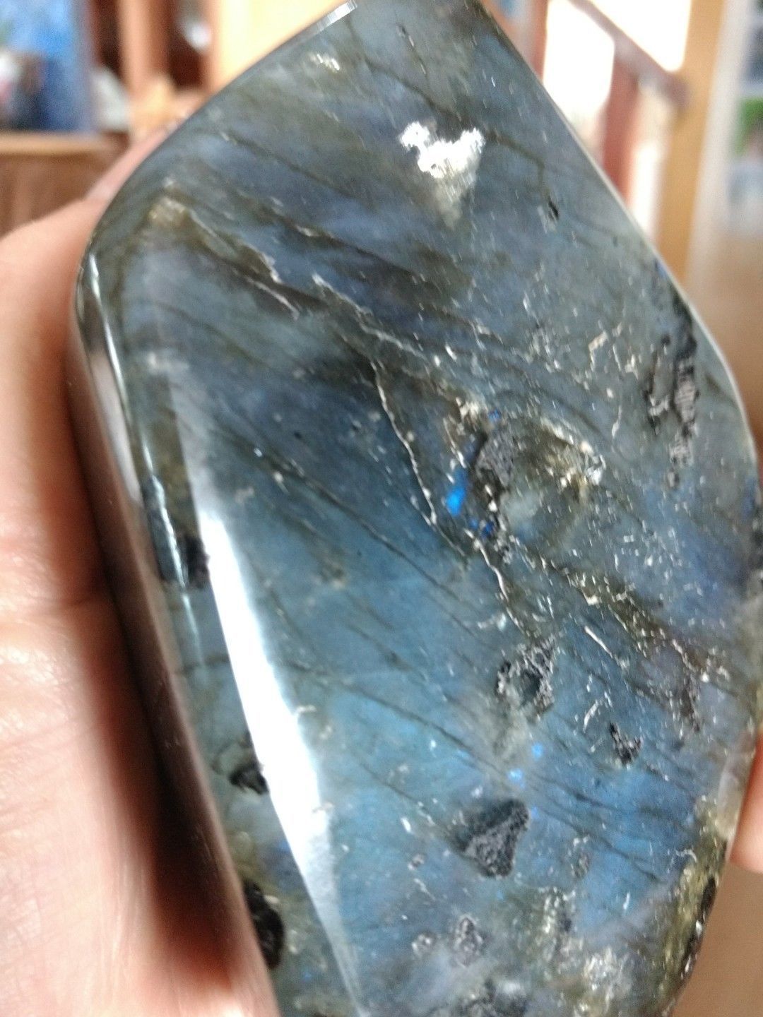 Large labradorite crystal, flashy colours.