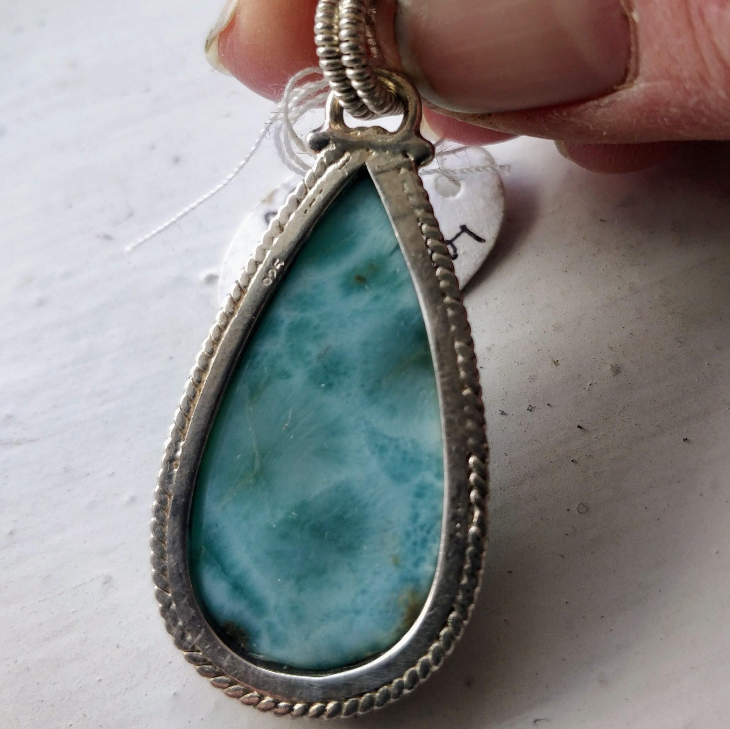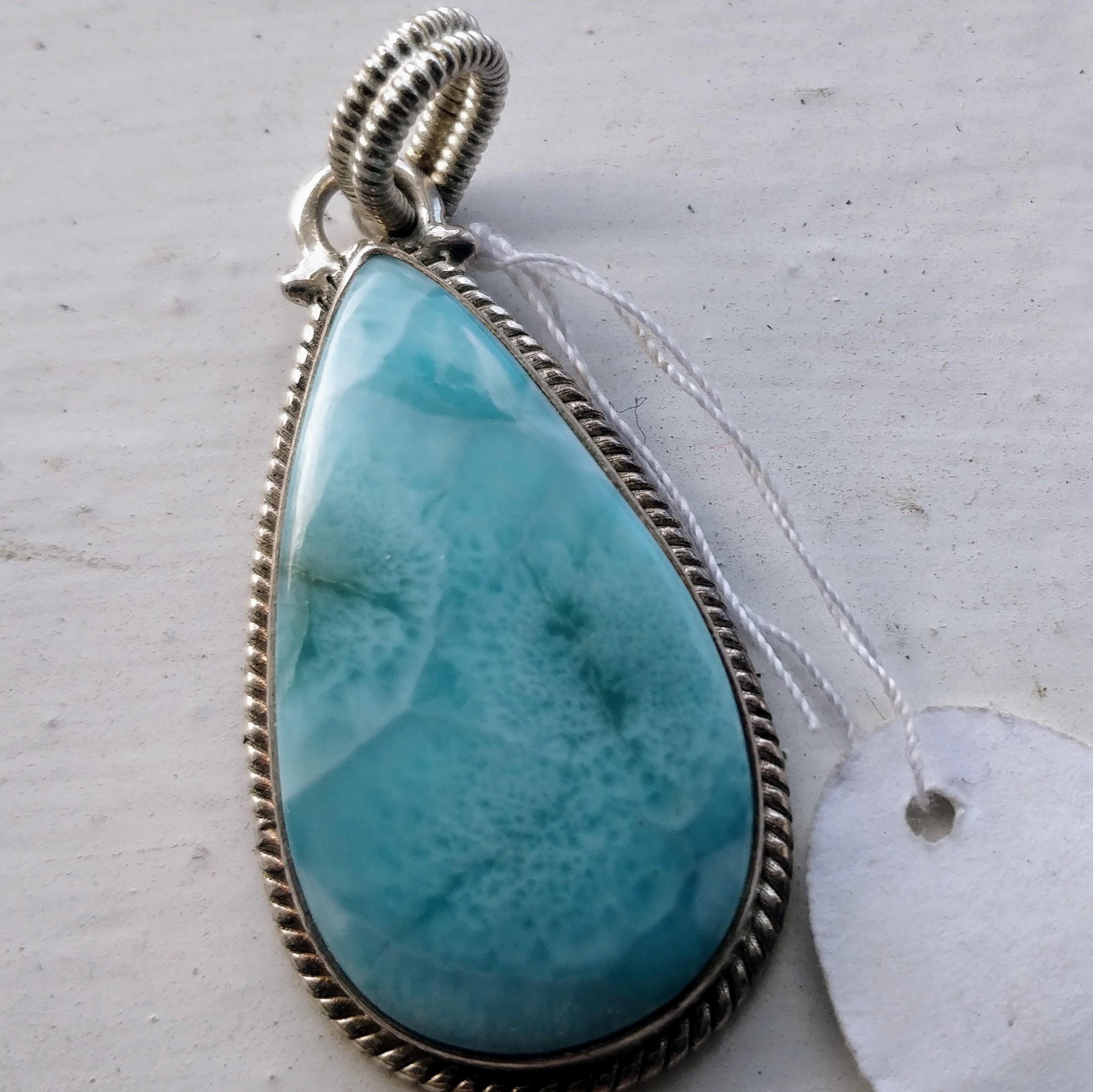 Beautiful large larimar pendant, made with 925 silver 50mm x 20mm